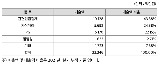 1) 금융결제사업분야(가상계좌, 간편현금결제, 펌뱅킹, PG)