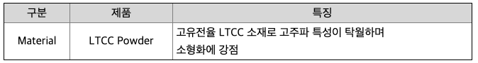 무선통신 필터용 소재로 당사에서 공급하고 있는 제품은 다음과 같습니다.