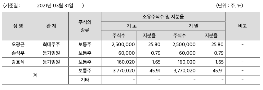투자활동 현금흐름 : 2018년 -91억원, 2019년 -110억원, 2020년 -15억원, 2021년 1분기 -24억원으로 투자활동 현금흐름이 원활합니다.