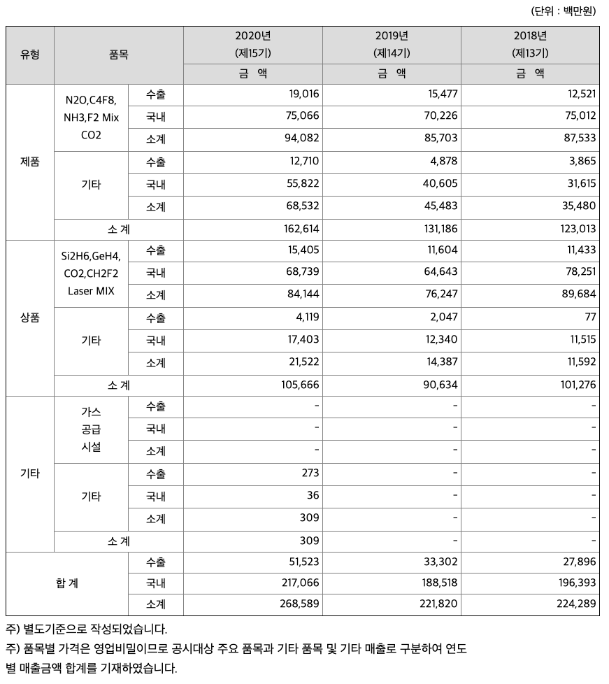 원익머트리얼즈가 영위하는 전자재료용 특수가스의 수요분야는 크게 DRAM과 NAND Flash 등의 Memory 반도체를 생산하는 삼성전자 및 SK하이닉스 등의 종합반도체 회사를 중심으로, 삼성디스플레이, 동우화인켐 등 디스플레이 및 LED 제조회사로 분류할 수 있습니다.