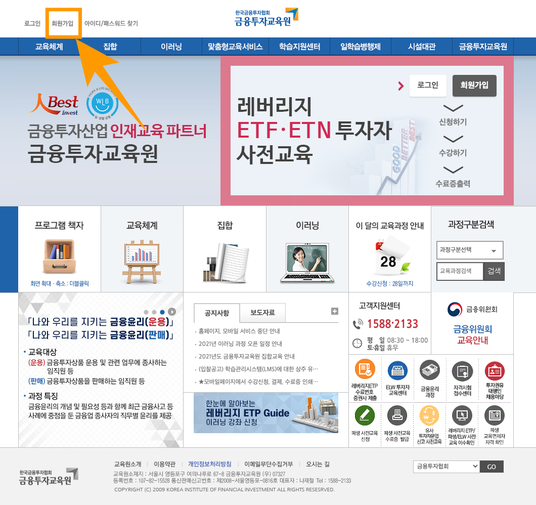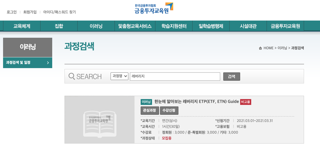 레버리지 ETF 교육은 "금융투자교육원 홈페이지"에서 가능합니다.