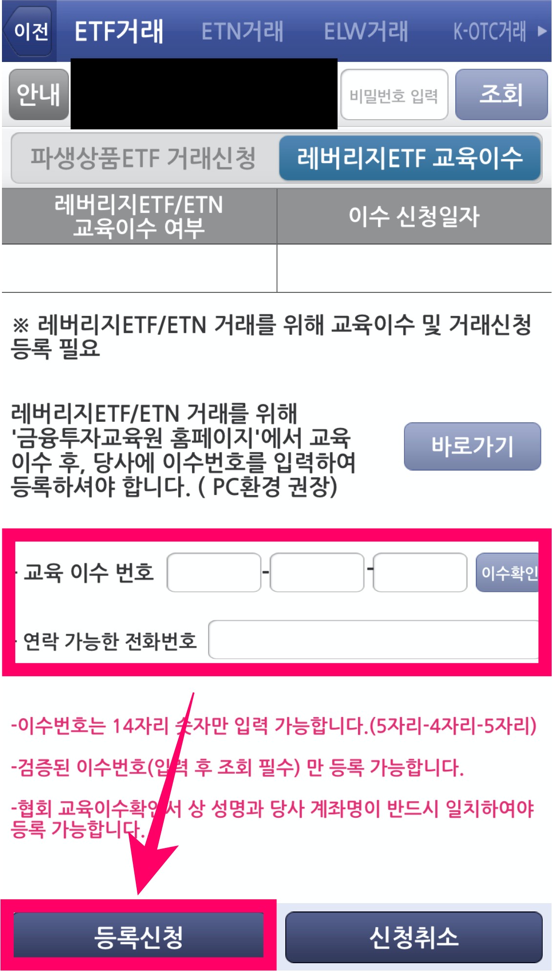 ***레버리지 ETF 교육 이수번호 확인 방법