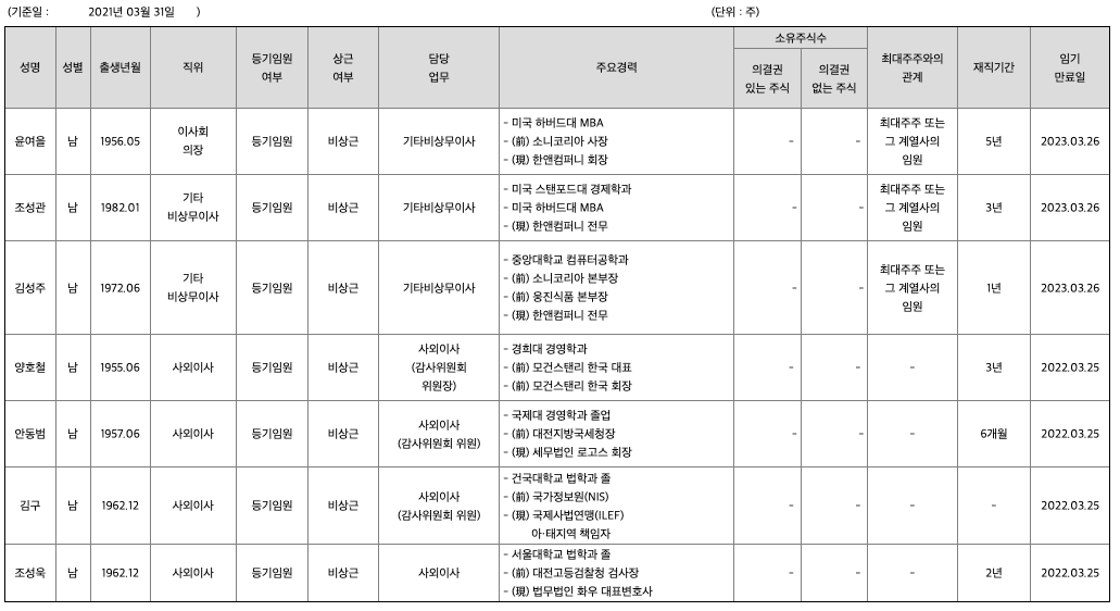 주주에 관한 사항