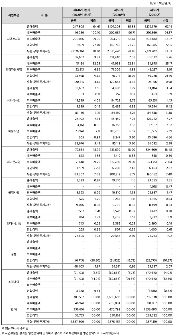 (1) 시멘트 사업부문