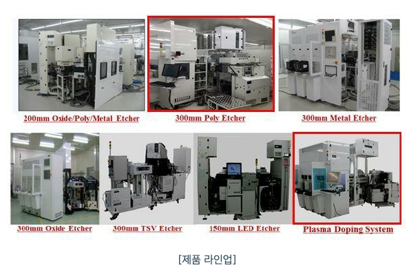 반도체 제조용 건식 식각장비의 경우, 2002년부터 2005년까지 200mm 웨이퍼용 산화막 및 금속, 폴리 식각장비를, 2006년부터 2008년까지 300mm 웨이퍼용 산화막 및 금속 식각장비를 개발하여 판매했습니다.