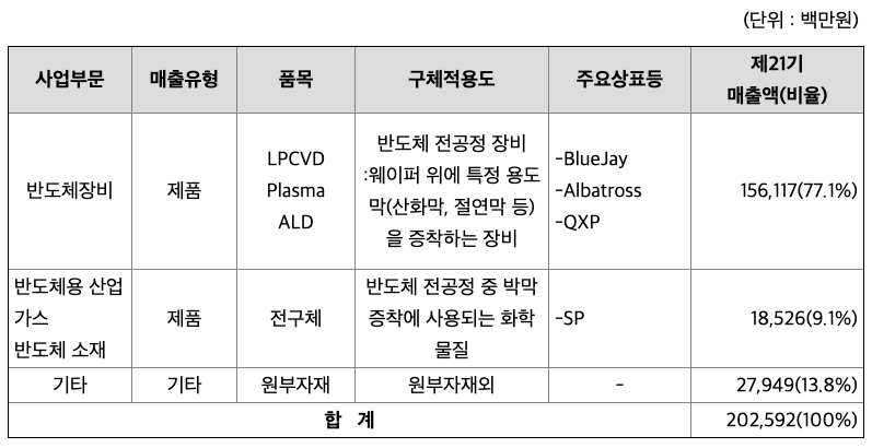 현재 당사는 국내 반도체소자업체와 공동개발계약에 의하여 개발 완료된 장비를 2003년부터 반도체 소자업체의 양산라인에 본격적으로 공급하고 있습니다. 당사는 창사이래 전공정 CVD장비의 국산화 및 연구개발을 추진하여 왔으며, 앞으로도 이러한 자체적인 연구개발 활동 및 반도체소자업체와의 공동개발 활동으로 반도체 전공정 장비의 국산화에 이바지 할 것입니다. 반도체 소재 부문에서는 국내 반도체 소자업체에 DRAM 캐패시터용 고유전율 물질 박막 증착에 필요한 전구체의 판매량 증진에 집중하고 있으며, 적극적인 마케팅 전략을 통해 시장 점유율을 확대할 것입니다. 당사는 인력의 과반수 이상을 연구개발에 투입한 연구중심 기업으로서의 활동을 지속하여 반도체 소재의 국산화에 이바지하고 반도체 미세화에 적합한 전구체 발굴과 사업화를 반도체 소자업체와 함께 추진할 것입니다.