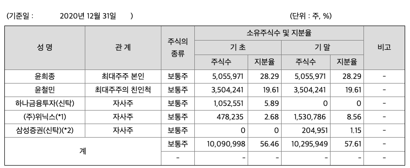 *자회사의 영업실적(2020년 1월 1일 ~ 2020년 12월 31일)