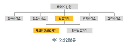 국내에서는 바이오산업을 의약바이오, 의료서비스부문, 의료기기부문, 산업바이오부문, 그린바이오 부문 등 5가지로 분류를 합니다. 당사의 주요사업은 의료기기 분류 내에서 체외진단의료기기 부분을 주로 연구개발, 판매를 하고 있습니다.