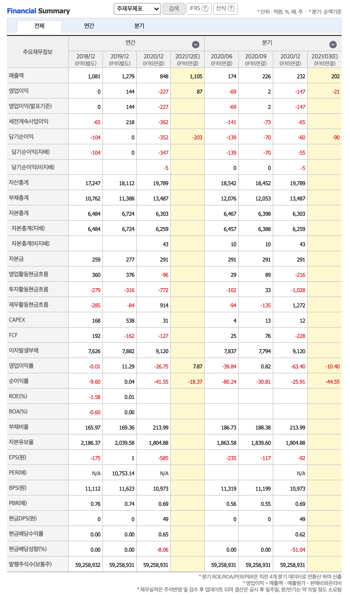FCF(미래현금흐름) : 2018년 192억원, 2019년 -162억원, 2020년 -127억원으로 2019년이후 미래현금흐름이 좋지 않습니다.