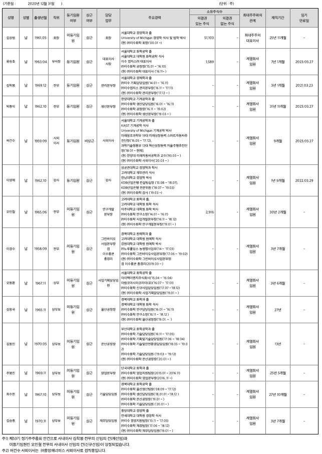 - 2018년 하반기 ~ 2019년 12월에 Plant 건설 완료 (울주군에 위치한 당사 온산공장 내, 연산 5천톤 규모)