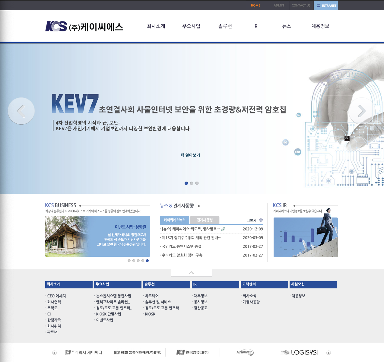 1980년 미국의 탠덤컴퓨터사와 국내 독점대리점 계약을 체결하면서 중대형 서버시스템 사업을 시작한 이래 1986년 금융결제원에 NonStop TXP라는 시스템을 공급하면서 본격적으로 금융권을 대상으로 사업을 전개하게 되었고, 이후 한강홍수통제소 및 의료보험관리공단등 공공 부분으로 확대하였습니다. 1988년 탠덤 시스템 기반의 지불결제 솔루션 업체인 미국ACI사와 독점대리점 계약을 체결하고 기업공개를 통해 회사명을 한국컴퓨터(현 한국컴퓨터지주)로 변경하고 본격적으로 금융전산화 시장을 개척하기 시작했고, 같은 해 금융결제원의 은행CD 공동망 구축을 필두로 타행환 공동망, 전자금융 공동망과 1994년 증권전산 공동망 등 국가 기간산업과 관련된 시스템 구축사업을 진행하였습니다. 1992년 시스템 통합 사업을 개시하면서 카드승인 시스템 및 증권사 주문전달 시스템 등 실시간 온라인 성능이 필요한 신규 업무에 탠덤시스템을 적용하기 시작하였고, 1997년 업계 최초로 운영하던 VAN 사업부문을 독립하여 (주)한네트를 설립하고 자사에서 생산한 현금자동지급기를 이용하여 금융 VAN사업을 확대하였습니다. 2002년 기존 한국컴퓨터지주(주) 그룹의 각 사업부문 특화 및 전문화 기업화 정책에 따라 물적분할에 의해 (주)케이씨에스(물적분할시 (주)케이씨아이)로 설립한 당사는 NonStop SI 및 실시간 비즈니스 솔루션 전문기업으로서 자리매김하면서 엔터프라이즈솔루션 사업을 시작했습니다. 기존 탠덤시스템 기반으로 공급하던 E/R(현재OGG)솔루션을 Open 시스템 기반의 CDC솔루션으로 포지셔닝하여 정통부에 처음 공급하면서 많은 Reference를 확보하였고, 이후 가상화 솔루션, BI솔루션, 보안솔루션 등을 추가하면서 엔터프라이즈솔루션 시장을 공략하고 있습니다. KIOSK단말은 철도, 극장, 리조트, 고속버스 등 다양한 용도의 티켓발매기를 비롯하여 FIS,주유기 셀프 Unit 등을 개발 및 제조하여 공급 중입니다. 회사가 개발 공급하는 모든 제품은 자체 구조 설계 및 Firmware 개발 등을 통해 고객의 요구에 맞는 사양으로 개발되고 있습니다. 고객과 공급 계약 또는 수주하게 되면 회사 기술연구소의 전문 인력의 설계 및 개발을 거쳐 작성된 BOM을 기준으로 외주 생산의뢰를 하게 되고 외주 생산 업체의 공정 검사 및 출하 검사 후 고객에게 납품하게 됩니다. 생산은 소량 다품종 제품의 특성에 따라 가장 적합한 전문 생산 업체에 의뢰하는데, 필요시 입찰을 거쳐 선정하여 진행하며, 이를 통해 품질을 높이고, 제조 원가를 줄여 시장경쟁력을 제고시키고 있습니다. 당사는 고도로 숙련된 제품 설계 및 개발 능력, 전문적인 제조업체의 선정과 지속적인 품질 관리 체계로 고객의 Needs를 충족시키고 있으며, 특히 사후 서비스는 전국적인 유지보수 네트워크를 보유하고 있는 업체를 통해 고객 만족을 실현하고 있습니다.