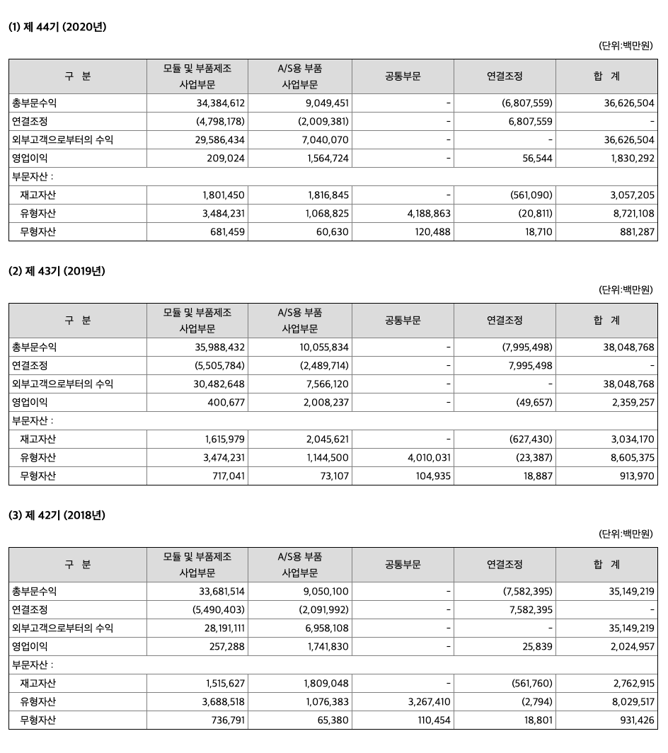(1) 모듈 및 부품제조사업