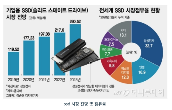 - 코로나19 장기화 되며 2021년 재택근무, 온라인 수강 등 데이터센터 설비투자 증설로 인한 엔터프라이즈 SSD 시장의 지속적 성장 전망