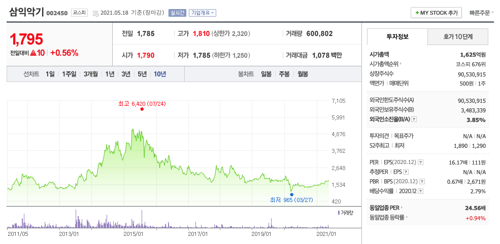 | 삼익악기 | 1795원 | 1706원 | 1678원 | 1751원 |