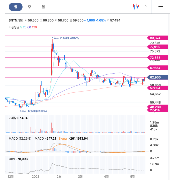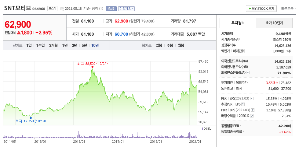 | SNT모티브 | 62900원 | 61370원 | 61680원 | 61895원 |