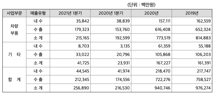 (1) 차량부품사업