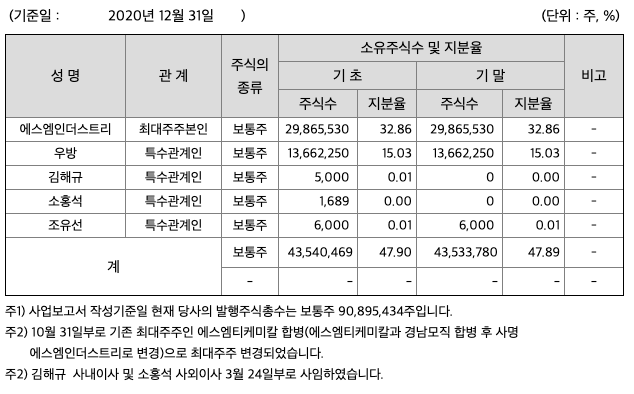 건설부문은 2014년부터 공동주택 시행 사업을 영위하였고 2015년부터는 우방토건을 합병, 조직 내에 건설사업부를 두어 시공을 같이 하고 있으며 현재까지 김포 고촌,화성봉담, 대전 오류동, 청주 테크노폴리스 분양사업을 성공적으로 진행하였습니다.당사는 시행사로써의 대외 인지도와 신뢰성을 바탕으로 시행 사업의 주체 역할을 수행하고 있으며, 전문 시공은 오랜 주택건설 시공 경험과 전문성을 갖춘 전문 인력을 투입하고 있습니다. SM그룹 내 공동브랜드인 "우방아이유쉘"을 사용함으로써 브랜드 파워를 강화하였고 내부 인테리어 및 마감재를 고급화하여 타 브랜드 대비 차별화를 진행하고 있습니다. 또한 수요가 우수한 지역만을 선별, 시공과정에서의 안전 및 품질 확보는 물론 '전국망 콜센터'를 도입, 24시간 고객과의 소통 채널을 구축하고 철저한 사후 관리를 통해 고객 만족도를 높여 주거문화를 선도하고 있습니다. 2019년 10월에 모델하우스를 오픈한 충남 당진 송악 분양 사업을 시작으로 2020년 3월에 입지 여건이 우수한 송추 북한산 분양 사업을 진행하였고, 2021년에는 부동산 수요가 높은 부산에서 분양 예정입니다. 당진과 송추 사업장의 신규 아파트는 그룹 내 고급 브랜드인 "경남아너스빌"로 분양하여 송추 사업장은 분양 인기로 인해 단기간에 전 세대 계약이 완료되었고 당진 사업장도 일부 잔여 세대를 제외하고 계약이 완료 되었습니다.