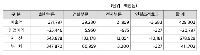 화학부문 중 폴리에스터의 경우, 세계 최초로 원사를 생산한 영국 ICI사의 생산기술을 도입한 이래 경쟁 기업들과 차별화된 품질의 원사를 생산하기 위한 노력을 지속 하고 있으며, 다양한 제품 및 안정적인 판매구조 확보, 원가 경쟁력을 갖춘 생산설비 구축 등을 통해 견조한 실적을 유지하고 있습니다. 또한 고수익/고기능성 시장을 공략하기 위해 원착사, 쥬라실, 난연사, 열복합사, 저/고수축사, 냉감/보온성 소재 등 차별화 제품 비중을 높이고 있으며, 코오롱머티리얼의 차별화 소재사업 부문의 인수를 통해 차별화 시장에서의 위치를 공고히 할 것입니다. 그리고 스파클 및 블랙야크와의 리사이클 PET 사업을 위한 업무협약을 통해 국내 최초로 국산 재활용 페트병을원료로 하는 리사이클 원사인 'K-rPET'을 생산, 판매하고 있습니다. 앞으로도 신뢰도 높은 브랜드 이미지 구축과 상황 별 판매전략을 통해 폴리에스터 원사 내수시장을 Leading하는 회사로 자리매김 할 것입니다.