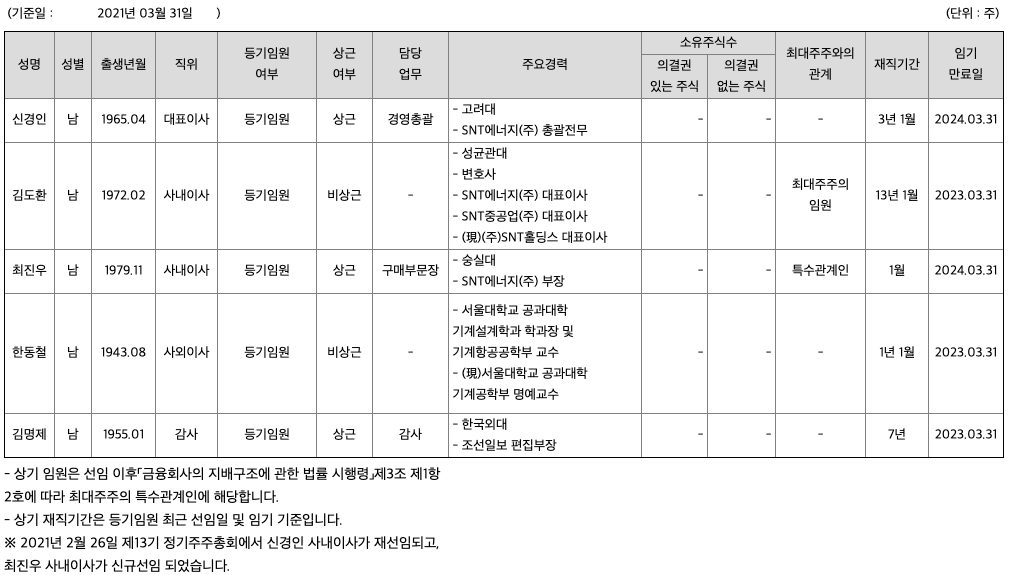 SNT에너지 목차 |