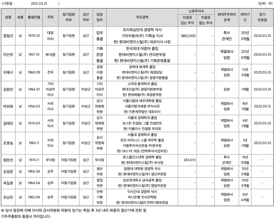현대비앤지스틸 목차 |