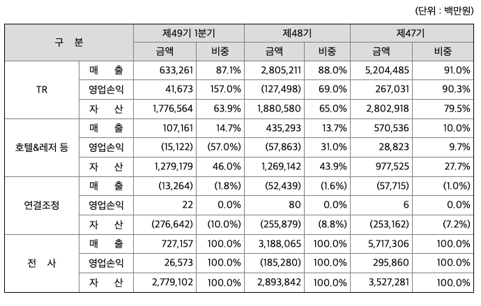 ㆍ당사의 경우, 개보수 등을 통한 상품경쟁력 강화, 서비스 및 음식의 질 향상