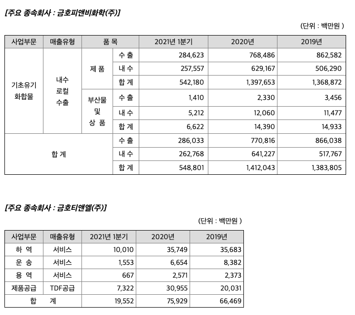 [주요 종속회사 : 금호피앤비화학(주)]