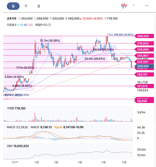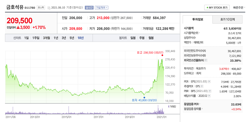 | 금호석유 | 209,500원 | 252,063원 | 251,821원 | 252,731원 |