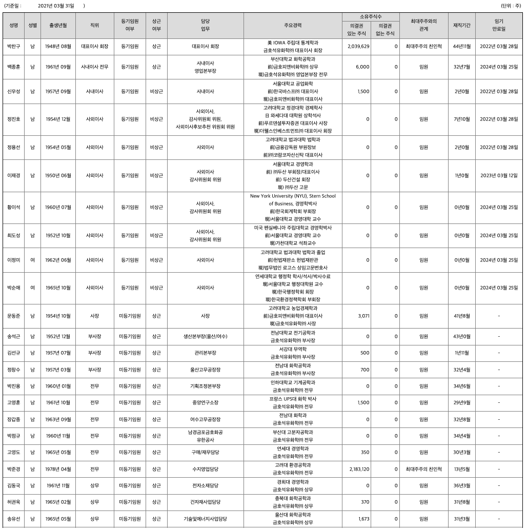 금호석유 목차 |