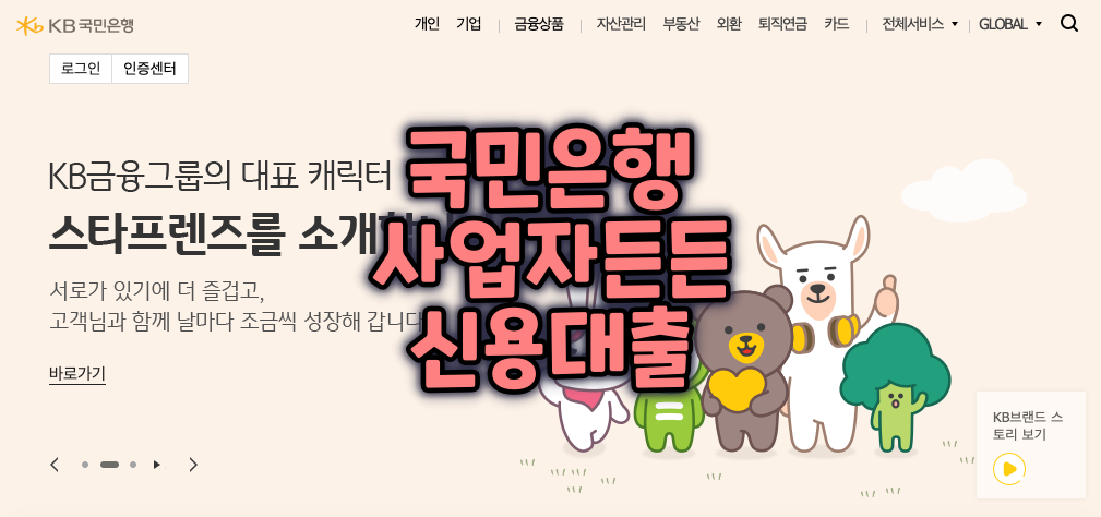 --> 자영업자 및 프리랜서 고객님들의 생활안정을 위한 KB 사업자든든 신용대출 가입가능채널 영업점 기간 최장5년 상환방법 일시상환, 분할상환 대출한도 최고 1억원 장바구니 상담신청 영업점