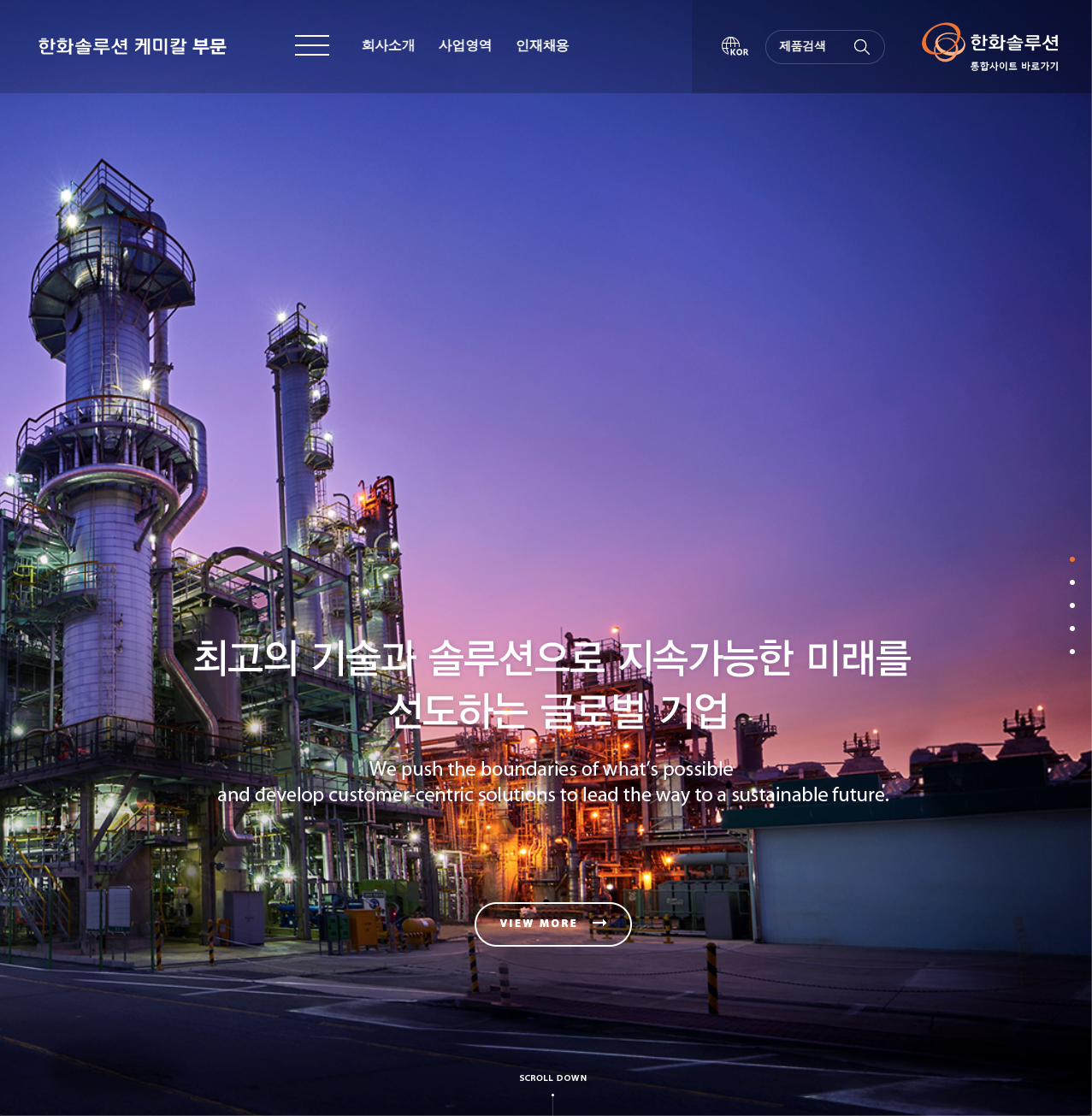 솔루션,석유화학 제품 업체,PE,PVC,가성소다,회사소개,사업영역,투자정보,인재정보 등 안내.