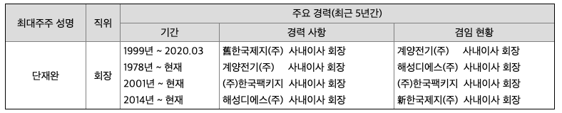 당사는 2019년 10월 이사회 결의를 통하여 사업다각화를 위한 신규 사업에 투자하기 위해 투자목적회사(SPC)인 해성팩키지(주)를 설립한바 있습니다. 해성팩키지(주)는 2020년 12월 원창포장공업(주)를 흡수합병하였으며, 사명을 원창포장공업(주)로 변경하였습니다. 향후 원창포장공업(주)를 통하여 포장사업의 시너지를 창출하고, 한단계 성장하는데 발판이 될 것으로 기대하고 있습니다.
