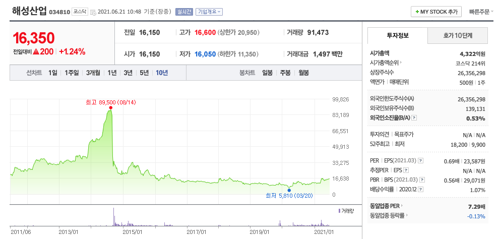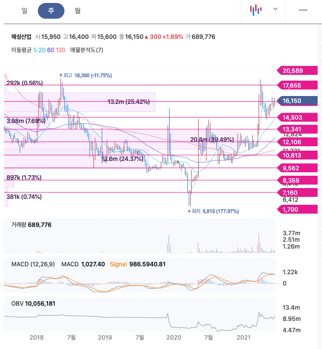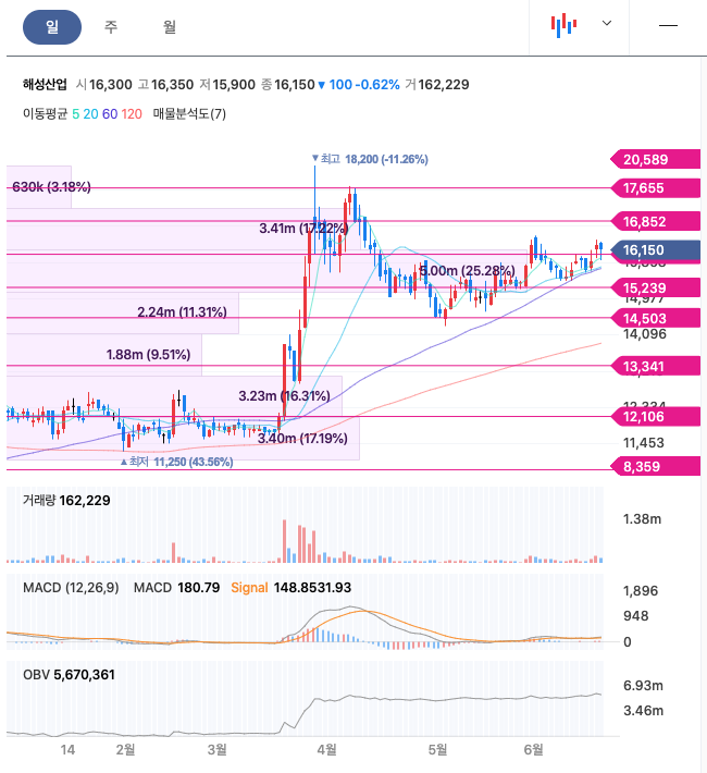 | 해성산업 | 16,350원 | 15,976원 | 15,977원 | 15,708원 |
