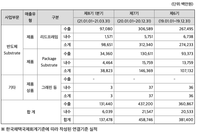 리드프레임은 전 분야에서 주요 경쟁업체 등과 함께 시장을 과점하고 있으며, 세계시장에서 당사의 점유율은 지속 성장하고 있습니다. 이는 동 공시서류에서 언급한 것처럼 높은 품질 신뢰성과 독자적인 PPF 도금 기술을 바탕으로 자동차용 반도체 재료 부문에서 높은 성장을 지속하고 있기 때문입니다.