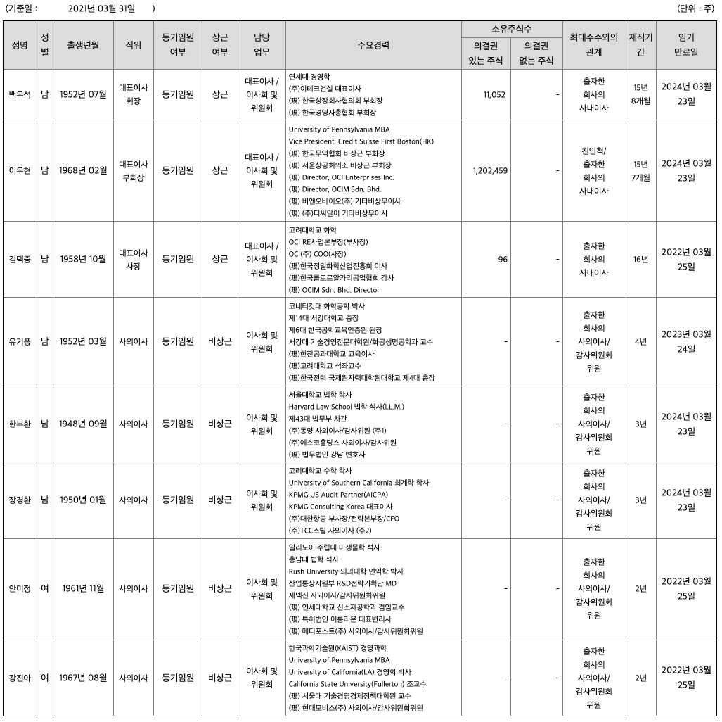 OCI의 2021년 영업이익은 4178억원으로 추정됩니다. 현재(21. 7. 2) 시가총액은 억원으로 멀티플 입니다.