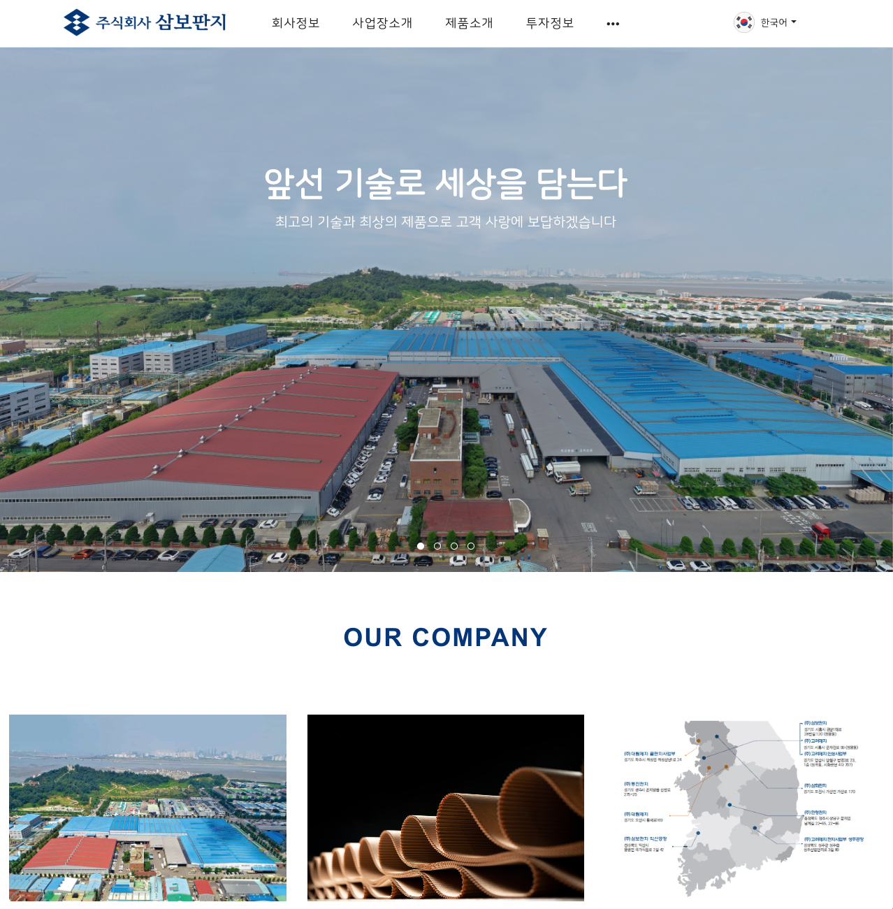 당사는 1973年 3月 골판지 및 골판지상자의 제조, 판매를 목적으로 개인업체로 설립, 1981年 7月에 법인으로 전환하여 현재까지 동사업을 영위하고 있으며, 시화공장과 익산공장에서 생산설비를 가동 중입니다. 2007년도부터 골판지 생산업체를 인수,계열회사로 편입하여 물류비 절감 및 지방 영업망을 확보할 수 있게 되었습니다. 현재 골판지 부문 종속회사로 (주)한청판지와 (주)삼화판지를 보유하고 있습니다.