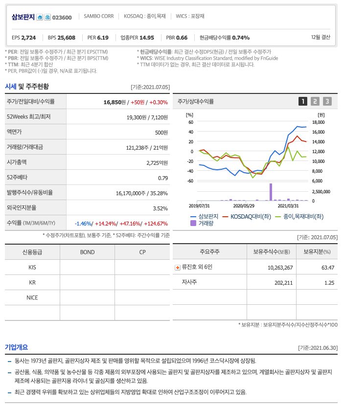 | 삼보판지 | 16,800원 | 16,596원 | 16,464원 | 16,908원 |