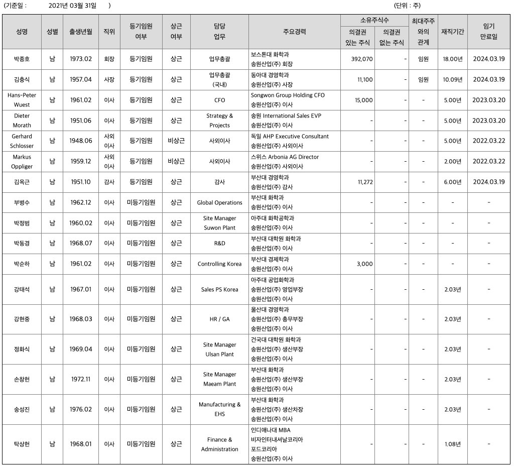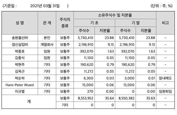 송원산업 목차 |