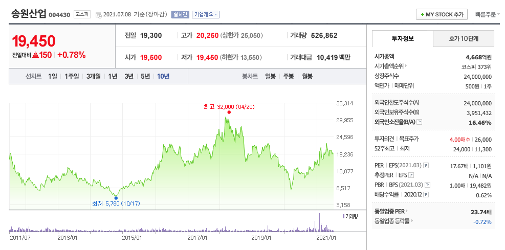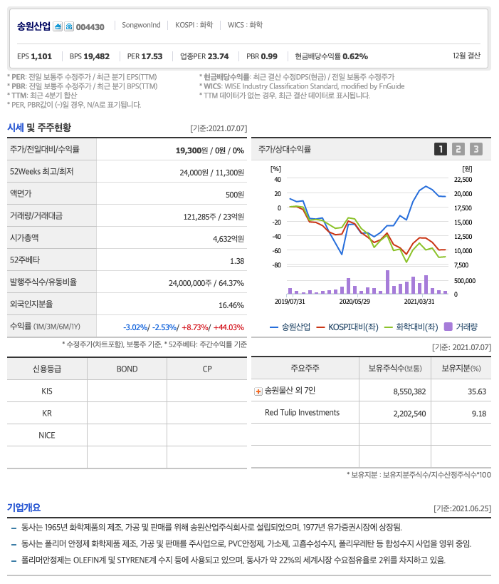 | 송원산업 | 19,450원 | 20,494원 | 20,678원 | 20,678원 |