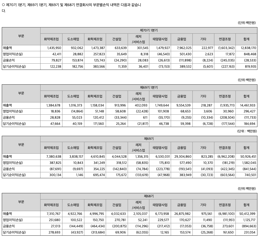가) 무역((주)한화 글로벌부문 등)