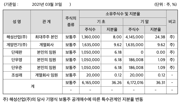 | 해성디에스 | 44,550원 | 38,555원 | 39,140원 | 39,520원 |