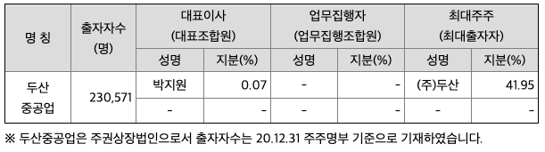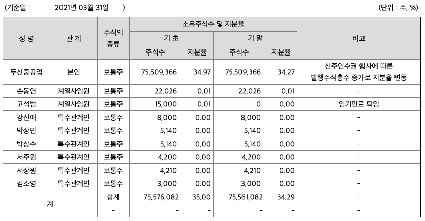 - 31%의 지분이 현대중공업지주 제뉴인 법인으로 매각되며 69% 지분은 두산밥 캣 지분가치에 따라 두산중공업 주식으로 전환