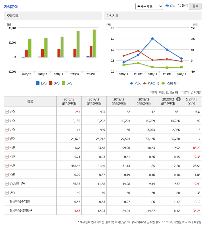 FCF(미래현금흐름) : 2018년 -528억원, 2019년 217억원, 2020년 420억원으로 미래현금흐름이 좋습니다.