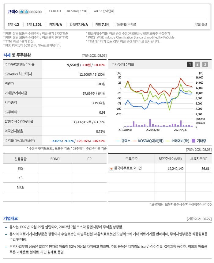 | 큐렉소 | 9,670원 | 10,047원 | 9,914원 | 9,802원 |
