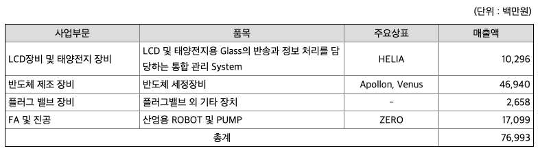 반도체 산업은 기술적 파급효과가 큰 최첨단 고부가가치 산업으로서 국가 경제 발전에 기여함과 더불어 특히 D램의 경우, 첨단 생산 기술력을 바탕으로 한 지속적인 설비 투자 및 경쟁력 확보가 이루어지고 있습니다. 한편 지속적인 성장을 위해서는 대규모 투자를 하여야 하는 반면 높은 위험 부담을 수반하고 있는 실정이라, 설비투자와 연구개발 투자에 거액이 소요되면서도 기술혁신의 속도가 매우 빠르기 때문에, 기업은 통상 2~3년 만에 설비를 재투자 해야 하는 부담을 안고 있습니다. 국내 반도체 산업은 1960년대 중반 외국 업체들의 조립 생산으로 시작했으며, 1983년 메모리 사업 진출 이후 급속한 발전을 이룩하여, 과거 90년대까지는 메모리 반도체 전성시대로 보고 있으며 21세기는 SOC(System-On-Chip)시대라 할 수 있습니다. 이는 반도체 소비시장이 바뀌고 있는데 기인하며, 기존 PC 시장에서 스마트폰, 태블릿 PC등 모바일 및 정보 가전시장으로 급속히 이동하고 있습니다. 이에 따라 메모리의 경우 D램에서 플래시 메모리로 품목전환이 급속히 이루어지고 있고, 시스템 IC는 다양한 기능의 융합화로 복합 기능칩 제품으로 발전되고 있습니다. 반도체는 '58년 IC(집적회로)가 최초로 발명된 이후 새로운 첨단산업을 창출하는 핵심 요소로서의 역할을 하고있으며 나노 기술을 통해 고집적화/ 고속화/ 대구경화 되고 있습니다. 하지만 초창기의 대부분은 후 공정 장비에 편중되어 기술 확보, 부품 산업 육성 및 수익률 측면에서발전이 미미했습니다. 전공정 장비는 기술 개발비 부담이 커 국산화에 어려움이 있으나, 전공정 장비의 저변 확대 및 기술력 확보를 위해 많은 노력을 기울이고 있으며 조금씩 가시적인 성과가 나타나고 있습니다. 이에 최근 반도체 '디자인 룰' 감소로 인한소자의 집적화에 의해 반도체 세정 공정의 중요성은 날로 커지고 있으며, 수율이 떨어지는 배치 방식을 대신해 매엽식으로 빠르게 전환되는 추세입니다. 당사는 high-k,Metal gate, 구리배선, 대구경화 등 차세대 공정의 이슈에 대응할 수 있는 새로운 세정 공정과 장비를 개발하고 있으며, 배치식 세정장비는 물론 30nm 반도체 소자에 대응하는 매엽식 세정장비를 중심으로 진행되고 있습니다. 특히 매엽식 세정장비는 기존 배치식 세정장비에 비해 파티클과 미세 에칭양 제어, 공정 단순화와 비용절감에 따른 환경친화 등의 장점을 갖고 있습니다. 당사는 2009년 4월에 일본 현지 자회사인 J.E.T.를 설립하였습니다. 동사에서는 반도체 WET 세정기를 생산 및 판매하고 있으며, 2010년 3월 당사 반도체 사업부에서도 반도체 WET 세정기를 출범 이후 대형 반도체 제조 고객사의 DRAM 공정 각 LINE에 매엽식 세정장비를 납품할 수 있었으며, 또한 2011년에는 진출하지 못했던 FLASH 공정에도 매엽장비를 납품하게 되어 대형 반도체 제조 고객사로부터의 입지를 견고히 하고 있습니다. 양산라인에서 요구되고 있는 CHEMICAL 회수 및 고 THROUGH PUT의 대응이 가능하며 최근 고객들이 요구하는 REAL DATA관리 및 모니터링 관리를 위해 2011년 이후 납입되는 장비의 PC화 작업을 성공적으로 완수하여 고객 만족도를 높였습니다. 또한, 기존의 배치 장비도 고온을 사용하는 STRIP 공정군에서는 유일하게 자회사인 J.E.T. 장비만이 납품되고 있어 사양화되고 있는 배치시장에서도 존재감을 유지하고 있습니다. 해당 장비의 생산 및 매출은 당사의 반도체 장비 시장 진출의 교두보가 되었으며, J.E.T.와의 전략적인 협력체제를 구축하여 세계 시장 공략의 포석을 마련하게 되었습니다. 한편 Batch Type 세정 장비를 제조할 수 있는 기술력을 바탕으로 2021년 03월 29일 J.E.T는 동경증권거래소 TOKYO PRO Market(일본)에 상장이 되었습니다. 이를 계기로 우수한 핵심인재를 확보할 것이며 더 나아가 세계시장에서 시장점유율을 확고히 하겠습니다. 반도체 부문은 고객사의 모바일 중심 제품 추진에 따른 CAPA 확장 진행이 예상되는바, 주력 반도체 세정 장비인 APOLLON 및 고온 황산 장비 등을 지속적으로 확장해 나가, 국내 외 동종 업체와의 경쟁에서도 확실한 우위를 점할 것이며, 장비 안정화와 차세대 공정 대응을 통한 고객 신뢰 확보에도 최선을 다 할 것입니다. 아울러 당사 통합 사업장이 준공이 완료되면서 당사의 핵심 숙원 사업인 Batch Type국산화 개발 및 양산에 박차를 가할 수 있게 되었으며, 향후 당사에서는 Single Type 뿐만 아니라 Batch Type 세정장비를 모두 제조할 수 있는 차별화된 경쟁력을 갖출 것으로 기대하고 있습니다. 또한 당사 진공제품 관련 사업부문에서는 반도체제조공정 및 일반 산업체 박막 공정에 주로 사용되는 Cryo Pump를 취급하고 있으며, Cryo Pump 의 특성상 짧게는 6개월, 길게는 2년주기로 Pump의 성능 Level 유지를 위한 유지보수 (Overhaul)가 필요하기 때문에 국내에서 사용되는 모든 Cryo Pump 는 당사에서 유지 보수하는 사업도 영위하고 있습니다. 당사가 취급하는 CryoPump 는 세계적으로도 Market Share 1위를 점유하고, 국내에서도 역시 1위를 점유하고 있는 상품입니다.