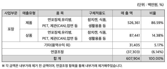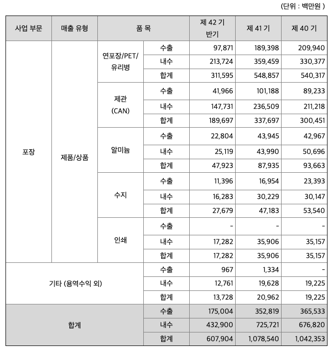 *** 주요제품 등의 현황