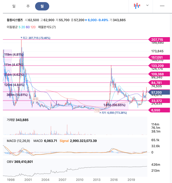 | 동원시스템즈 | 56,700원 | 56,244원 | 56,932원 | 53,695원 |