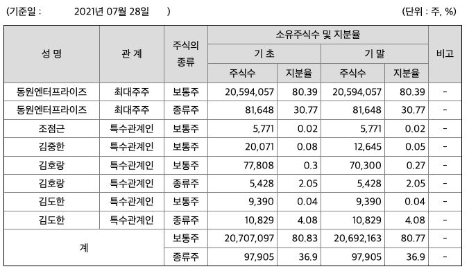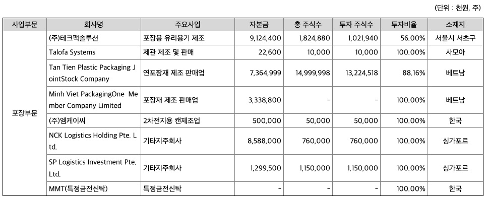 지배기업은 1980년 5월 10일자로 설립되어 각종 포장재와 알미늄을 제조, 가공 및 판매하고 있습니다. 당기 보고기간 종료일 현재 지배기업의 자본금은 129,419백만원이며, 최대주주는 (주)동원엔터프라이즈(지분율 79.88%)입니다.