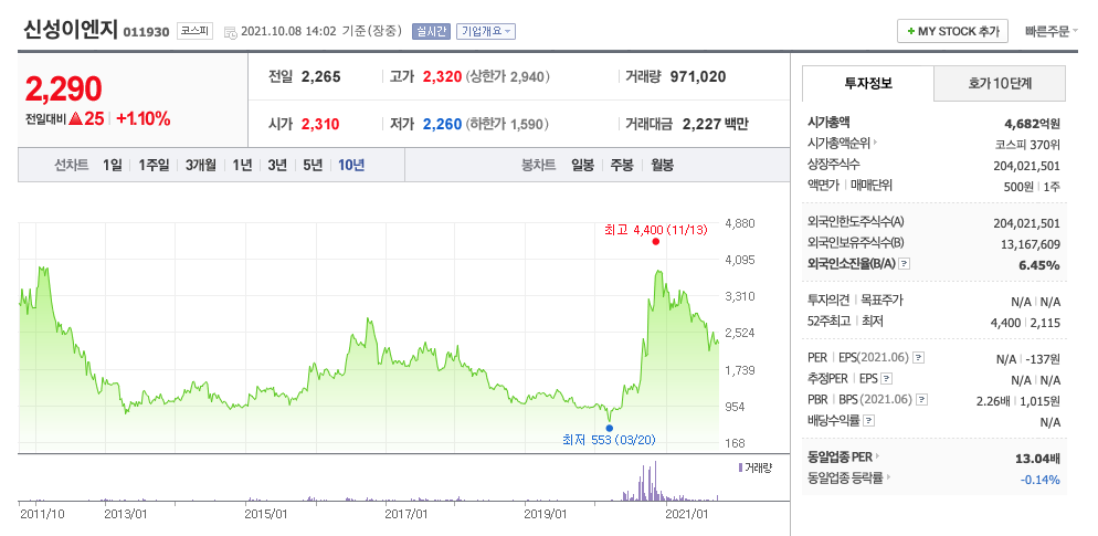 | 신성이엔지 | 2,300원 | 2,564원 | 2,480원 | 2,575원 |