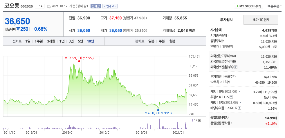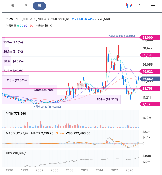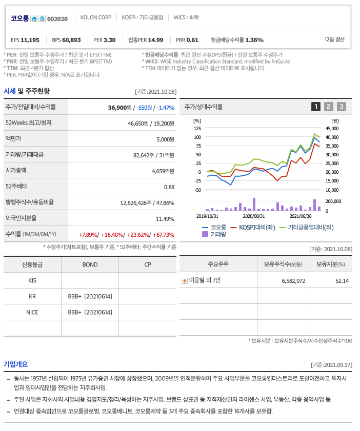 | 코오롱 | 36,650원 | 40,083원 | 38,116원 | 35,882원 |