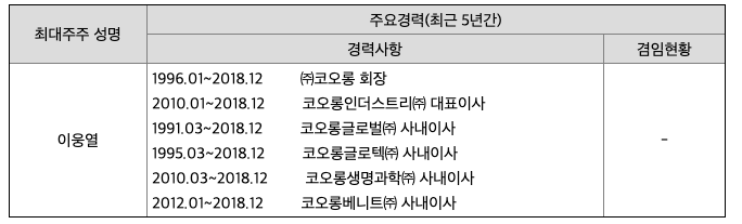 지주회사란 다른 회사의 주식을 소유한 회사이며 단순히 주식을 소유하는 것만이 아니라, 법적기준 이상의 해당회사의 주식(의결권)을 보유함으로써 그 회사에 대하여 실질적인 지배권을 취득하는 것을 사업의 목적으로 하는 회사입니다. 지주회사는 크게 순수지주회사와 사업지주회사로 구분할 수 있습니다. 순수지주회사는 어떠한 사업활동도 하지 않고, 다른 회사의 주식을 소유함으로써 그 회사를 지배하는 것을 주된 목적으로 하며 지배하는 자회사들로부터 받는 배당금 등을 주된 수입원으로 합니다. 사업지주회사는 직접 어떠한 사업활동을 함과 동시에 다른 회사를 지배하기 위하여 주식을 소유하는 회사입니다. 당사는 순수지주회사에 해당됩니다. 인적분할 이후인 2010년부터의 주된 사업의 내용은 (i)지주회사 고유의 사업인 자회사의 제반 사업내용을 지배/경영지도/정리/육성하는 지주사업, (ii)'코오롱' 브랜드 상표권 등 지적재산권의 라이센스 사업 및 관련 광고 사업, (iii)부동산 매매 및 임대업, (iv)시장조사 및 경영자문, 무형자산의 판매 및 용역사업 등 입니다.